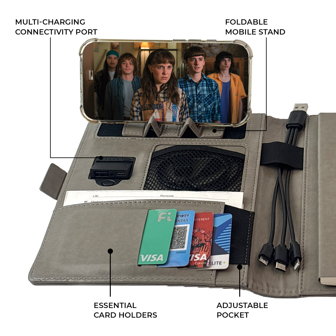 From binge-watching to charging — this diary’s foldable stand, multi-charging port, and smart storage keep you powered and organized anywhere.