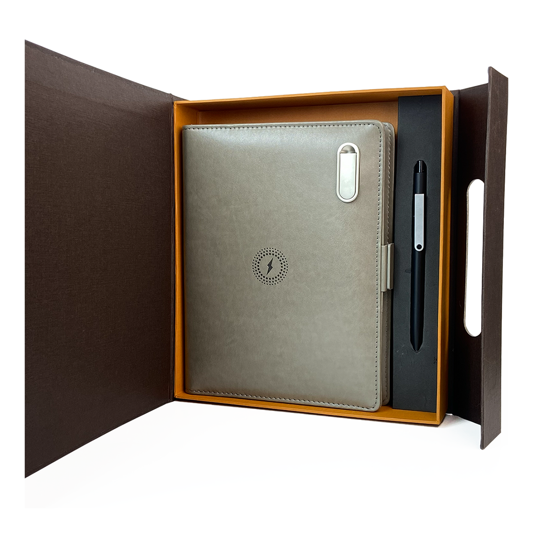 Next Gen - Smart Wireless Charging 8000 mAh Powerbank Notebook with 16 GB Pendrive - (Free Name Personalisation) - Grey