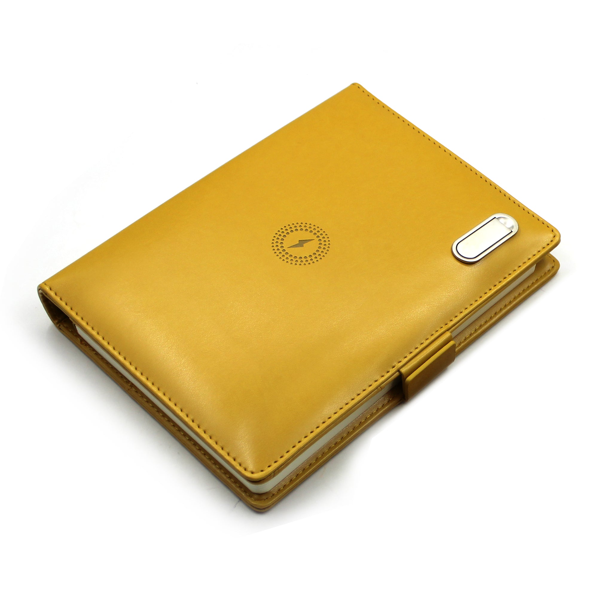 Next Gen - Smart Wireless Charging 8000 mAh Powerbank Notebook with 16 GB Pendrive - (Free Name Personalisation) - Mustard Yellow