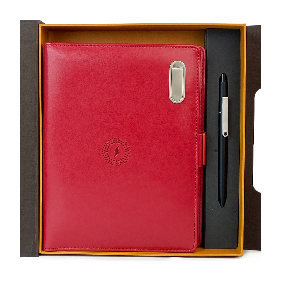 Next Gen - Smart Wireless Charging 8000 mAh Powerbank Notebook with 16 GB Pendrive - (Free Name Personalisation) - Red