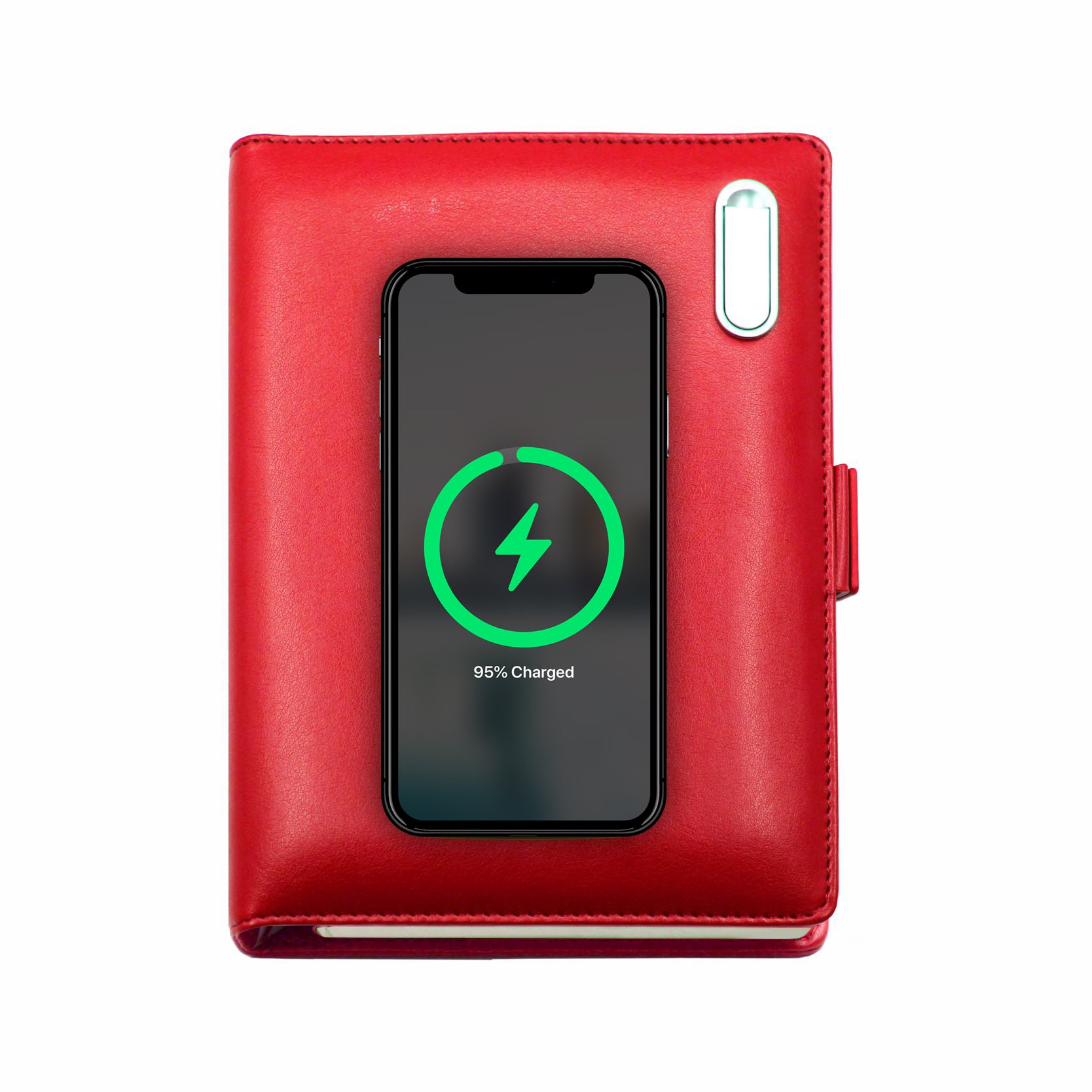 Charge your phone seamlessly on top of the diary — compatible with both iOS and Android devices.