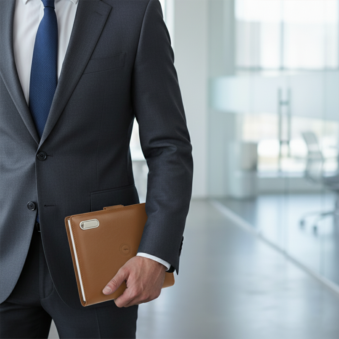 Charge your phone seamlessly on top of the diary — compatible with both iOS and Android devices.