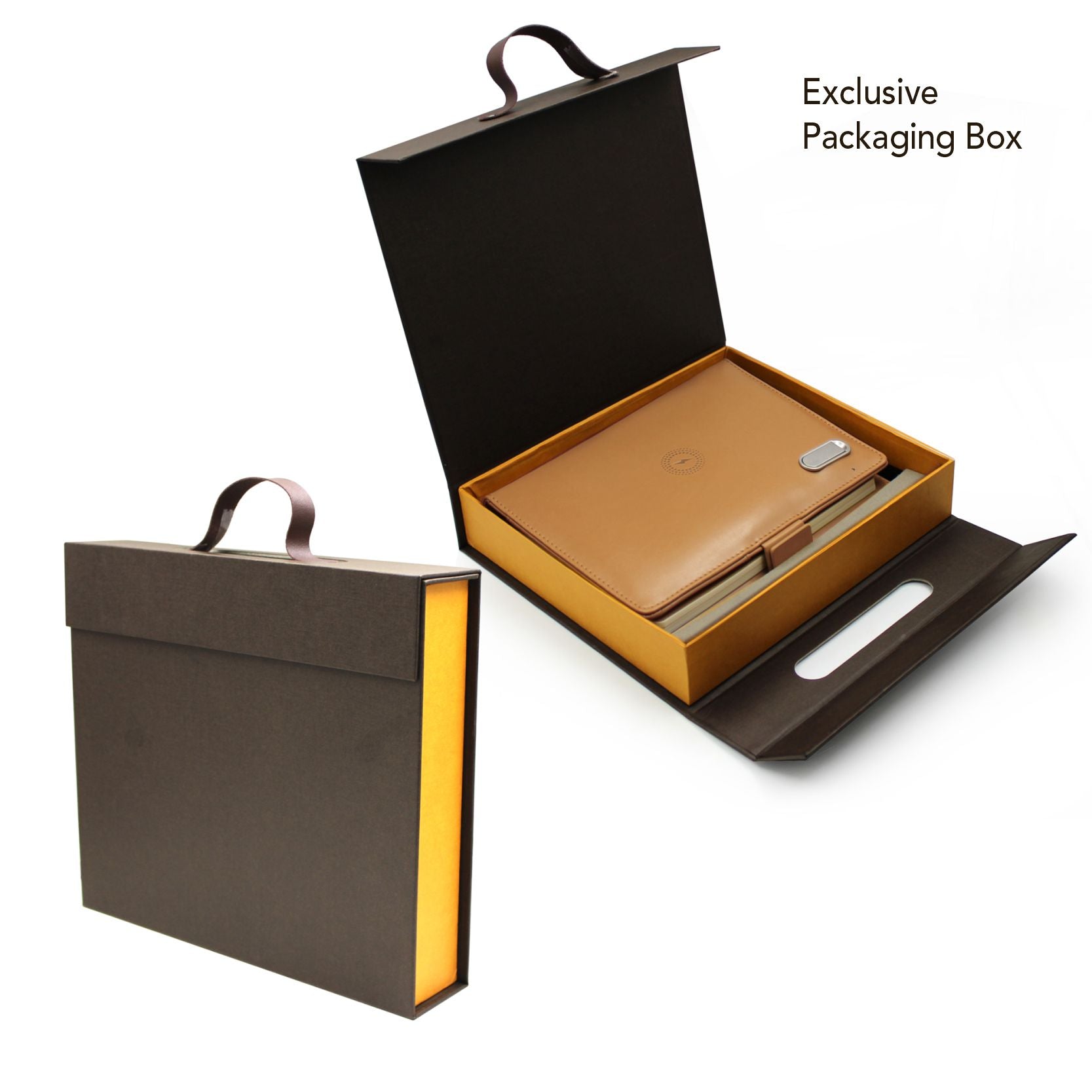 Next Gen - Smart Wireless Charging 8000 mAh Powerbank Notebook with 16 GB Pendrive - (Free Name Personalisation) - Tan