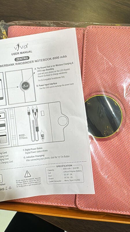 Charge your phone seamlessly by placing it on top of the diary — compatible with both iOS and Android devices for a truly smart experience.