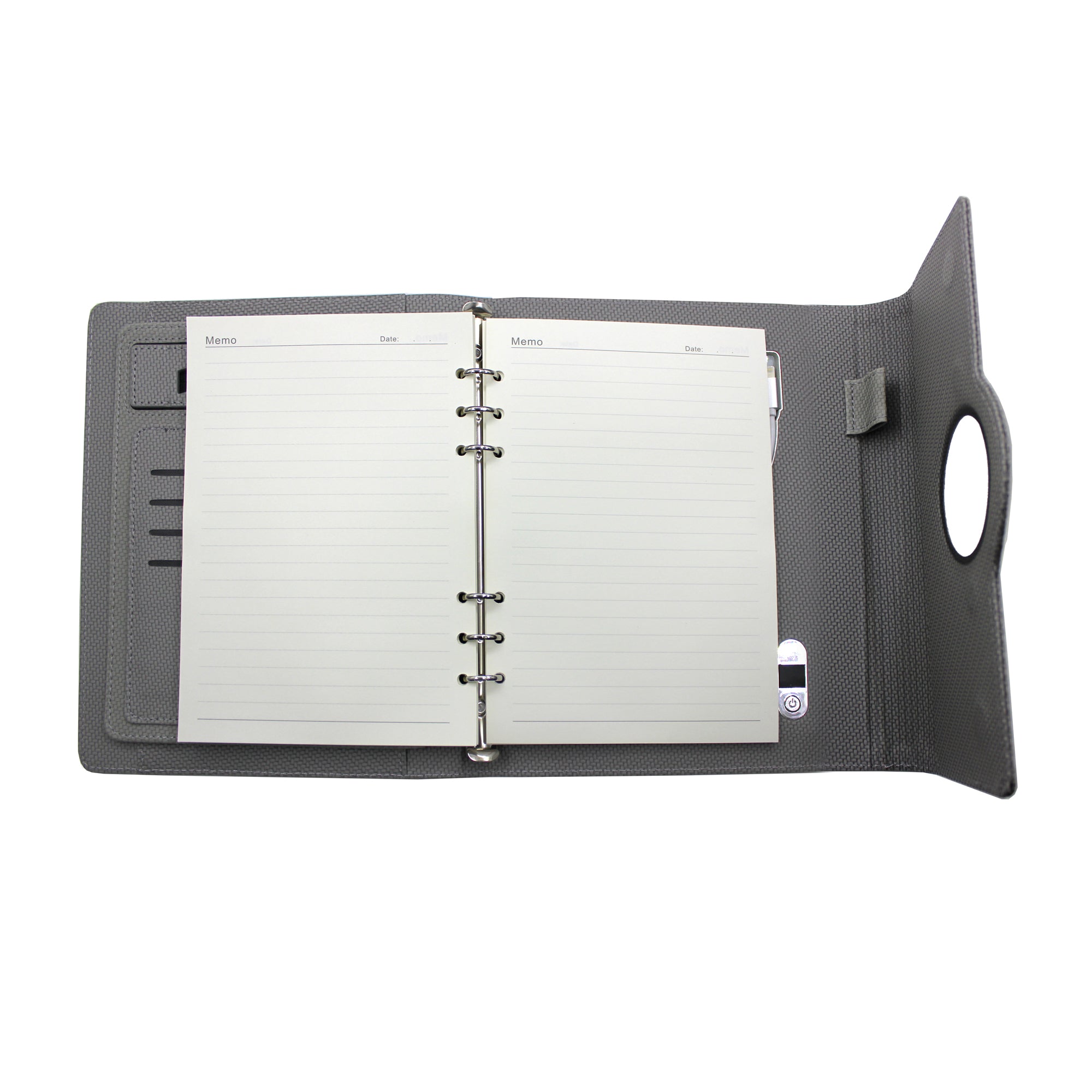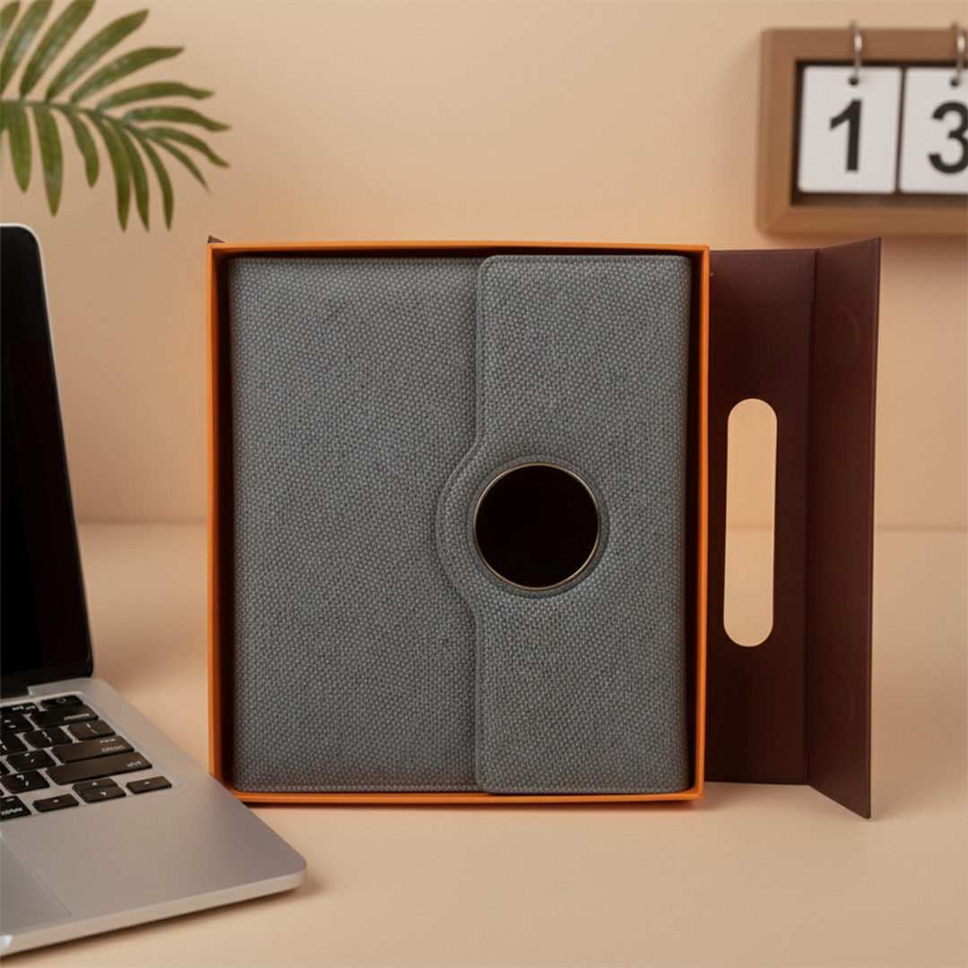 Charge your phone seamlessly by placing it on top of the diary — compatible with both iOS and Android devices for a truly smart experience.