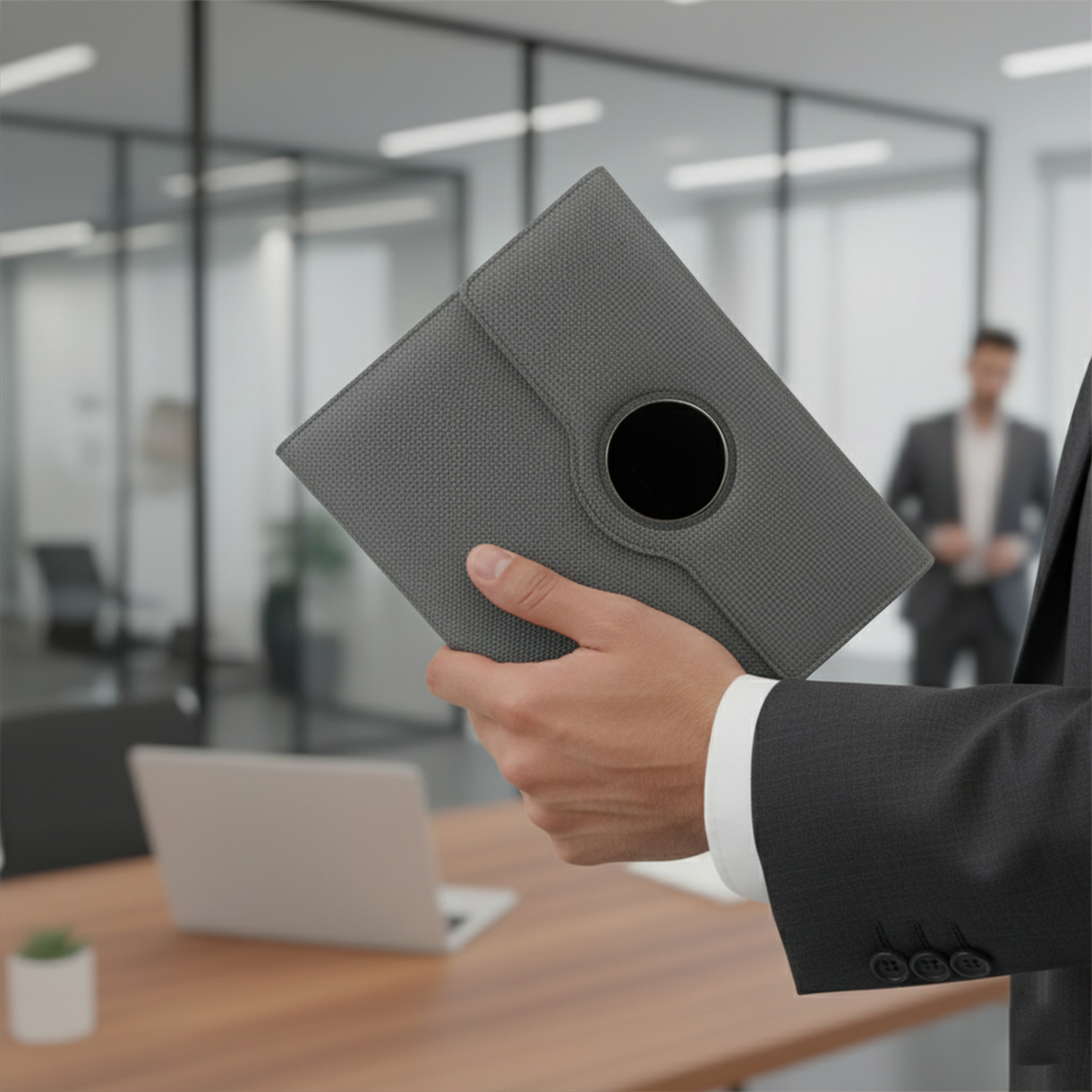 Stay productive on the go with a foldable mobile stand, elastic tech holder, essential card slots, and a mesh compartment — all designed for seamless functionality and style.