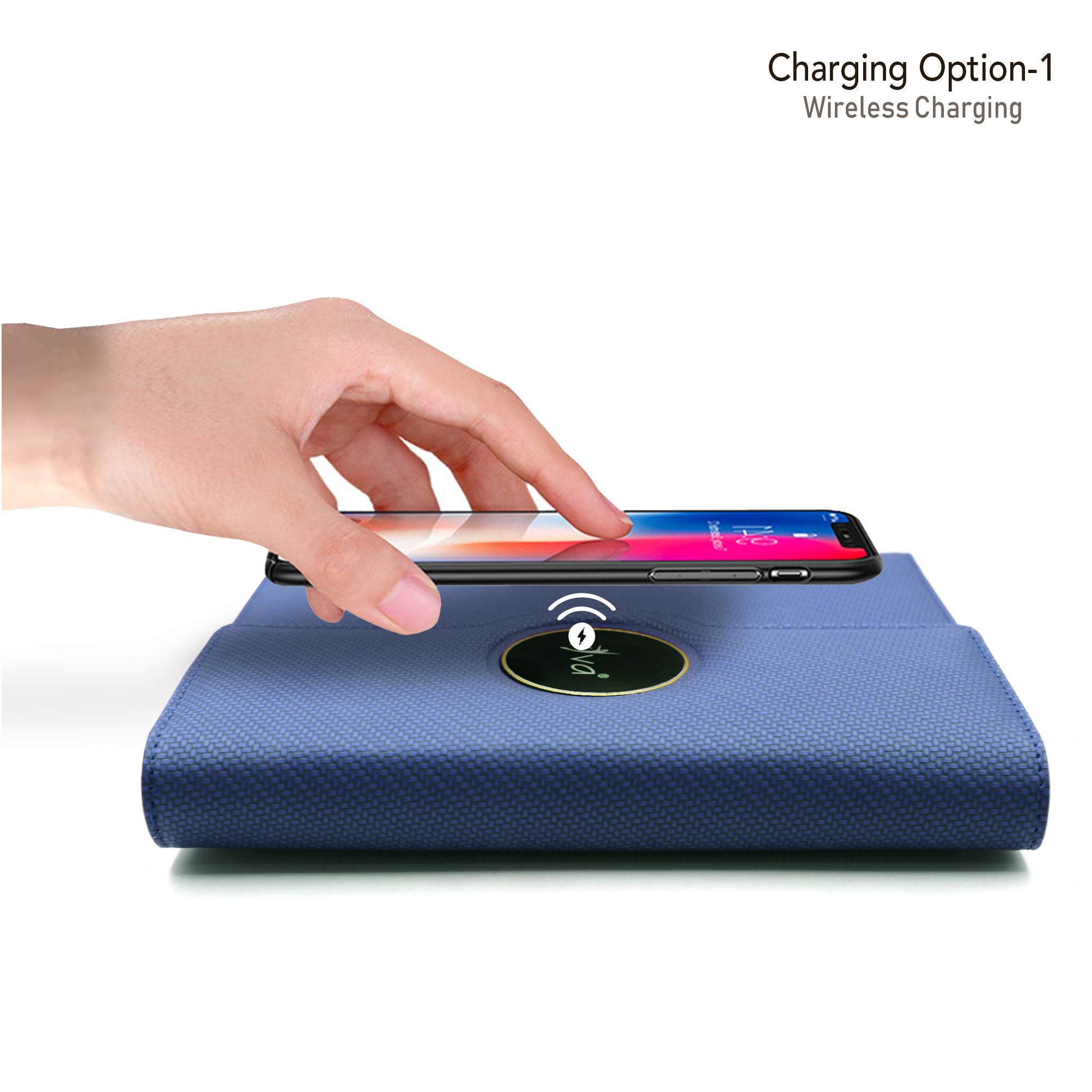 Sparq Smart Wireless Charging 8000 mAh Powerbank Notebook (Free Name Personalisation) - Navy Blue