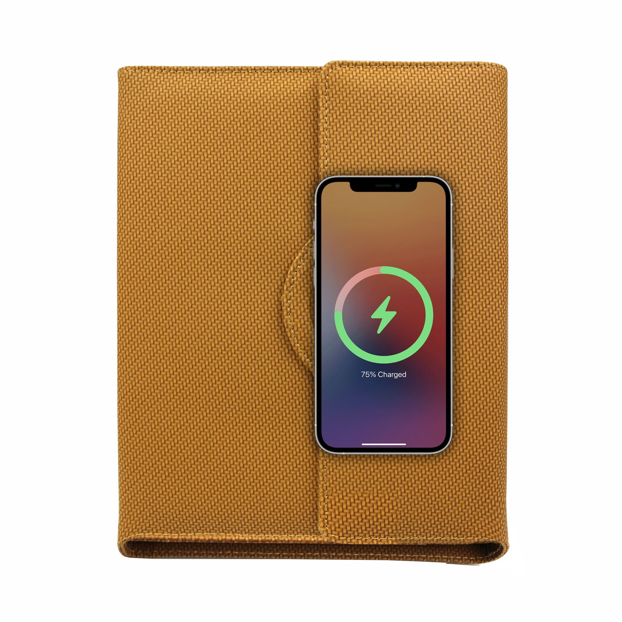Charge your phone seamlessly by placing it on top of the diary — compatible with both iOS and Android devices for a truly smart experience.