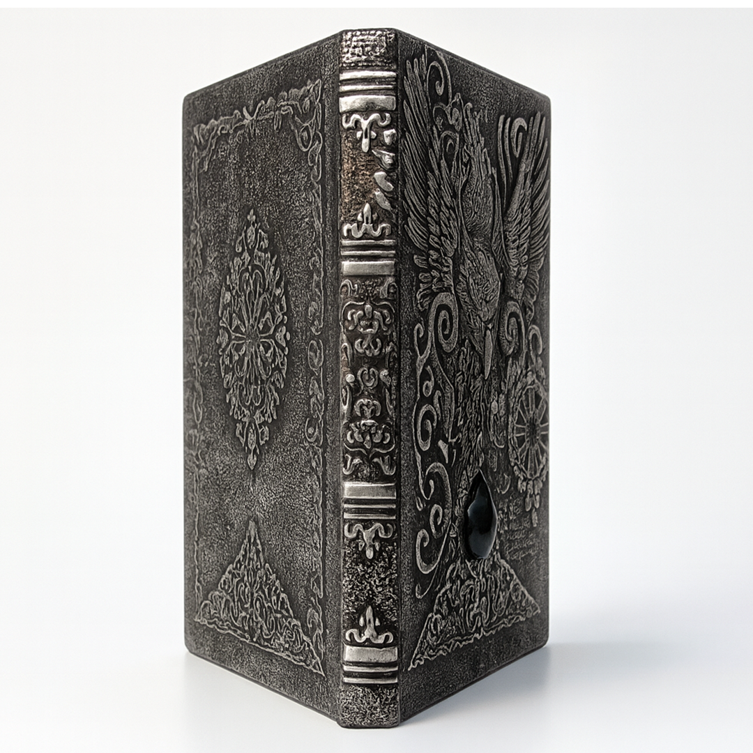 Fierce, mystical, and richly symbolic — The Faceless Owl is a journal for the brave, the creative, and the curious. This limited-edition silver-embossed leather notebook features a majestic winged owl with outstretched feathers and a striking sapphire-like gemstone embedded at its center, evoking mystery, power, and clarity.